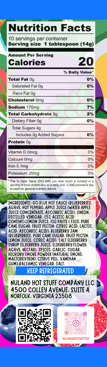 Go Blue Hot Sauce is one of NuLand’s most intriguing creations — blending ripe blueberries and fig with subtle fennel and a whisper of hickory smoke. Customers loved how it delivered depth and richness without heavy heat, and naturally began experimenting with it as a dressing and drizzle.