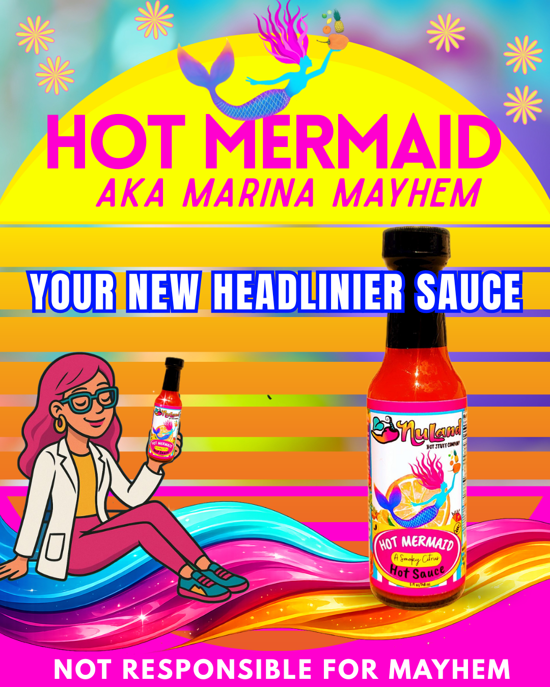 • Hot Mermaid – Smoky citrus, with pineapple, orange, lemon, lime zing in an aged cayenne base