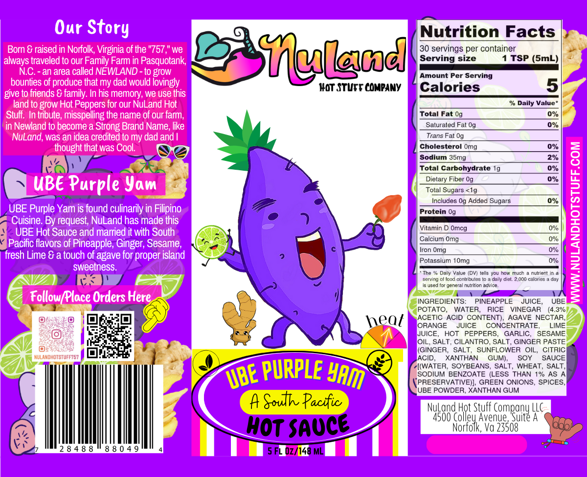 Ube Purple Yam is found culinarily in Filipino Cuisine. NuLand has married Ube with South Pacific flavors of Pineapple, Sesame, Ginger, fresh lime & a touch of agave for proper island sweetness, without added sugar.